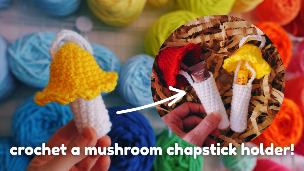 Itโs that time of year where if I donโt put chapstick on every hour or so (and up my water intake), I turn into a shriveled husk – but Iโm really wretched at remembering to put it on, and also to drink more water, so I came up with a brilliant solution: make it so… Continue reading Mushroom Chapstick/Lip Gloss Holder Crochet Pattern + Video Tutorial